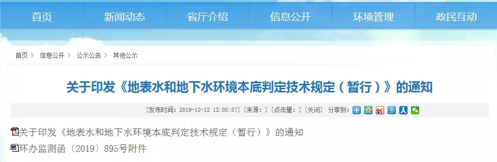環境部發布《地表水和地下水環境本底判定技術規定(暫行)》