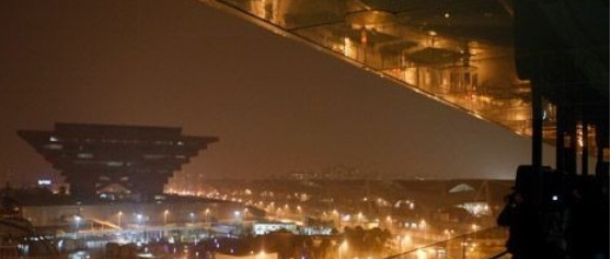 圖為世博園內一軸四館將參加“地球一小時”活動,29日晚熄燈進行燈光調試
