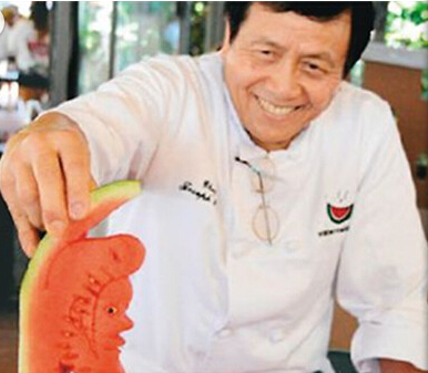 潘國強說,他雕刻西瓜已經有14年時間,這次是專門到洛杉磯附近城市參加西瓜節。盡管自己是華裔,但他不僅可以做中國菜,還可以做法國菜、意大利菜等各種菜式,平時還會到拉斯維加斯擔任廚師評委,甚至還會到世界各地教授廚師課程。