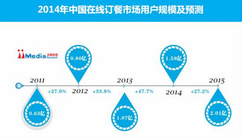 iiMedia Research數(shù)據(jù)顯示,2013年中國在線訂餐市場用戶規(guī)模達(dá)到1.07億,預(yù)計(jì)2014年中國在線訂餐用戶規(guī)模將達(dá)到1.58億。