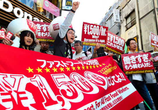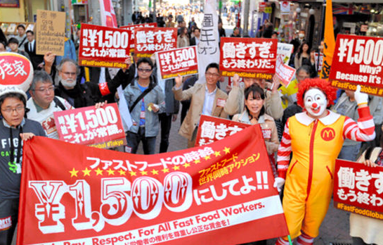 日本快餐業員工鬧市游行 要求上調最低時薪