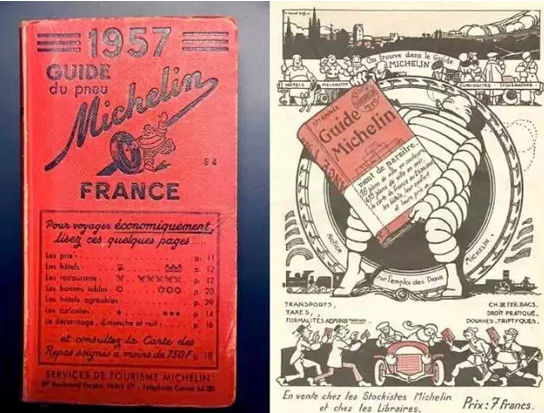 米其林公司發展起來后,覺得光靠輪胎質量好辨識度不夠高,覺得應該多給客人一些跟汽車、輪胎相關的實用小福利,于是他們開始免費發放一本指南。當時這本指南還是一本十分正常的由輪胎公司出版的免費指南,內容包括:手把手教你換輪胎、雷達一樣為你發現加油站和旅館之類,旨在做個駕駛者們的旅游指導小幫手。