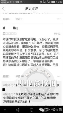 顧客:就餐不爽給差評竟遭罵