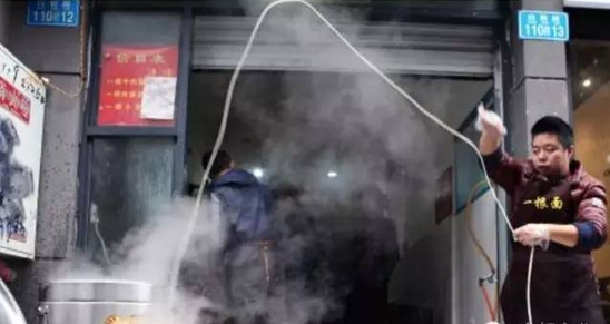 重慶一小面館師傅上演絕活,一根面條50米,一碗面只有一根面。這家“一根面”面館位于南岸區(qū),只見面館師傅趙明曦,將面條向天空拋去,面條在空中劃出起伏的弧線,最高離地約兩三米,最后面條穩(wěn)穩(wěn)落入沸騰的大鍋灶內(nèi)。兩分鐘后,將面撈起,熱辣鮮香,勁道十足。