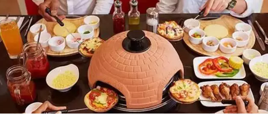 將自己做好的比薩餅放入桌面的小烤爐中,在開心聊天中等侯吧!烤爐時間當(dāng)然根據(jù)食材來設(shè)定。