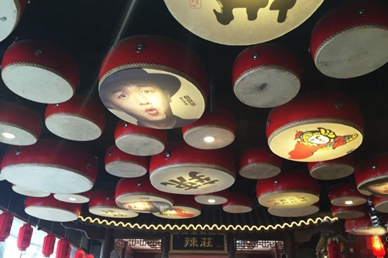 近1000平米的門臉面積,3層樓高的高度,即使立在簋街也相當扎眼。將此門面化整為零分割區域,把辣擎火鍋的標簽掛出來,“穿越文化老火鍋”“中國十大麻辣火鍋”“一次性用油老火鍋”。