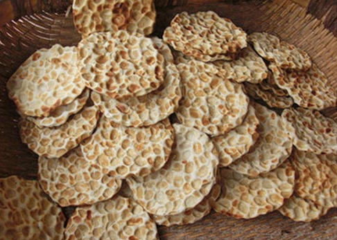 袁枚在《隨園食單》里寫到“天然餅”,謂其渾然天成。“經陽張荷塘明府,家制天然餅,用上白飛面,加微糖及脂油為酥,隨意捐成餅樣,如碗大,不拘方圓,厚二分許。用潔凈小鵝子石,襯而漠之,隨其自為凹凸,色半黃便起,松美異常。或用鹽亦可”。清代石子饃傳到長江流域,也深受社會各階層的喜愛。