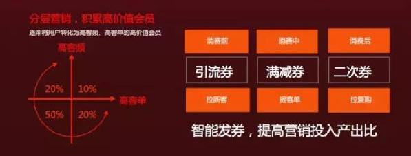 同時,在口碑的新數據營銷工具中,方案不是粗暴地發放代金券,算法會根據商家所屬類目、所處區域,從口碑收集的百萬成功營銷案例中,調取出與該商家情況最相似的一批成功案例分析共性,然后結合商家的常規客單、客流等情況,產出滿減比例、滿返力度等具體的營銷公式,進行代金券的分類并適時推送。
