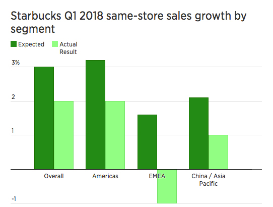 星巴克2018財(cái)年1季度全球同店銷售僅漲2% 未來(lái)要靠中國(guó)了?